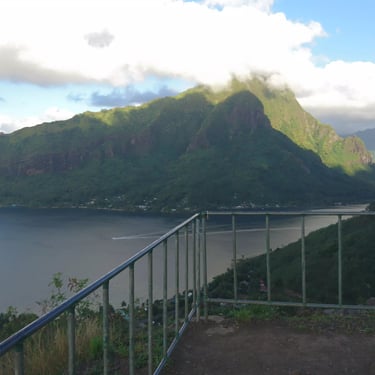 Depuis son sommet, à 230 mètres d’altitude, vous profiterez d’une vue imprenable sur les baies d’Ōpūnohu et de Cook, les lagons turquoise, les motus, et même l’île de Tahiti par temps dégagé